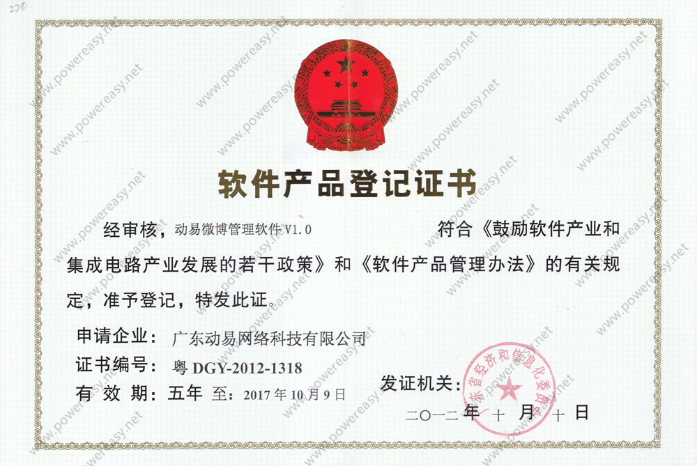 軟件產(chǎn)品登記-動易微博管理軟件V1.0