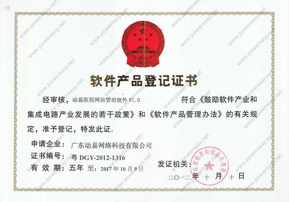 軟件產(chǎn)品登記-動易醫(yī)院網(wǎng)站管理軟件V1.0