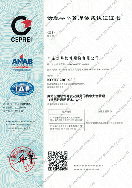 ISO 27001 信息安全管理體系證書