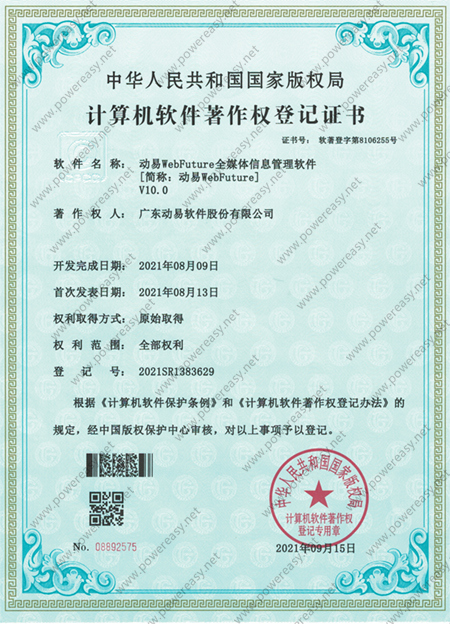 軟件著作權(quán)-動易WebFuture全媒體信息管理軟件V10.0