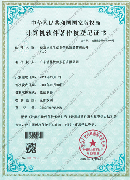 軟件著作權(quán)-動易畢業(yè)生就業(yè)信息追蹤管理軟件V1.0