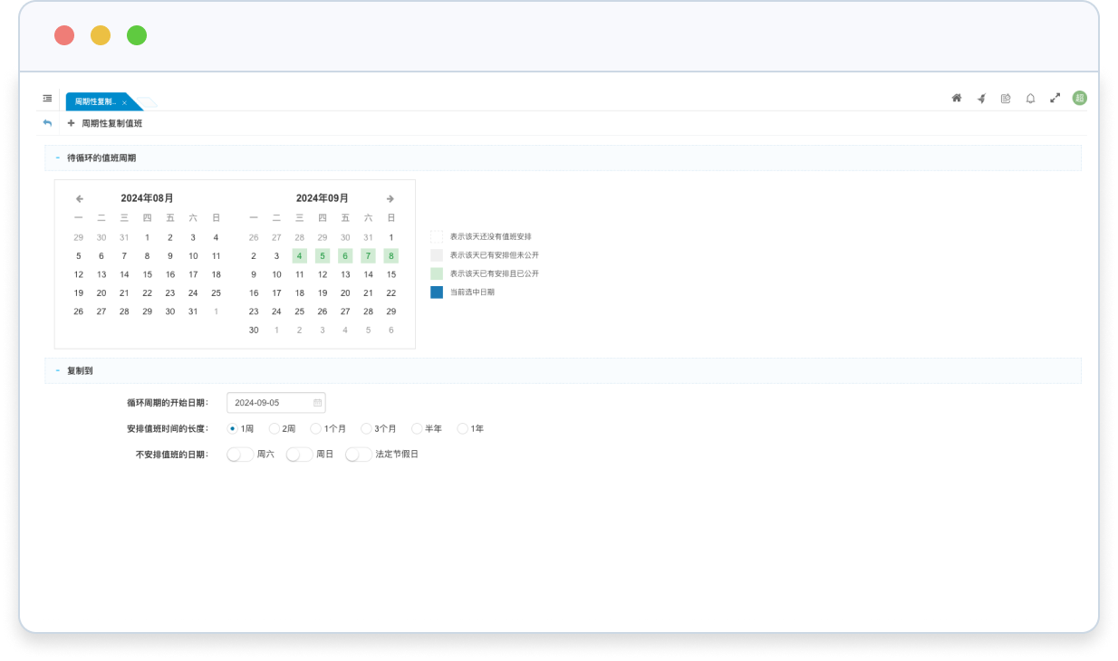 - 支持按周期復(fù)制值班功能,可快速的安排好未來一段時(shí)間的值班。