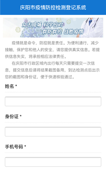 慶陽疫情防控檢測登記系統(tǒng)啟用首日運(yùn)行順暢