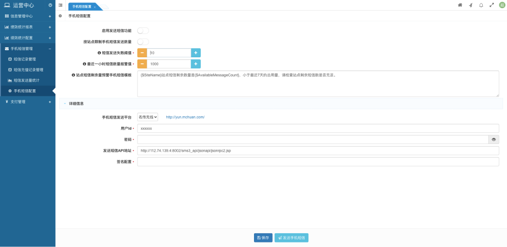 當(dāng)發(fā)送失敗次數(shù)達(dá)到 N 次的不同手機(jī)號碼的短信數(shù)量累計到 10 條時(這可能意味著短信平臺出現(xiàn)問題),系統(tǒng)將向平臺超級管理員發(fā)送站內(nèi)短信和郵件進(jìn)行報警(因?yàn)榇藭r手機(jī)短信功能可能不可用)。