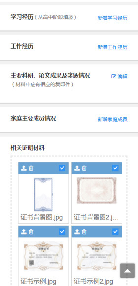 報(bào)名表的填寫(xiě)采用仿真界面,接近紙質(zhì)報(bào)名表的樣式,并支持上傳相關(guān)證明材料(圖片、視頻、PDF、壓縮文件等格式)。