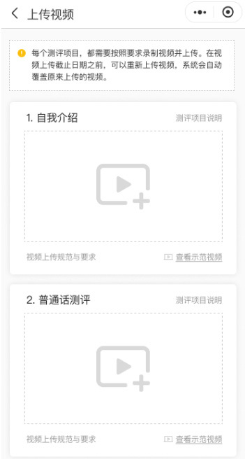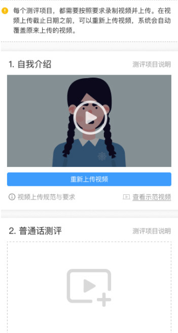 考生的報(bào)名通過(guò)審核后,進(jìn)入視頻上傳階段,考生需要在規(guī)定時(shí)間內(nèi)按照要求上傳視頻。