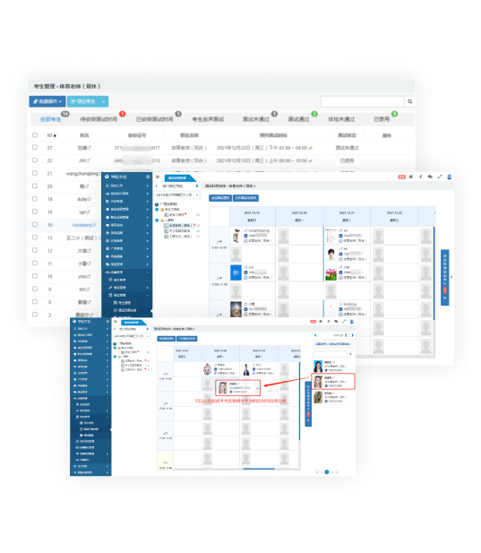獨(dú)創(chuàng)的將組織面試環(huán)節(jié)加入到招考管理的全流程里,可對(duì)已通過筆試的考生在線安排面試。