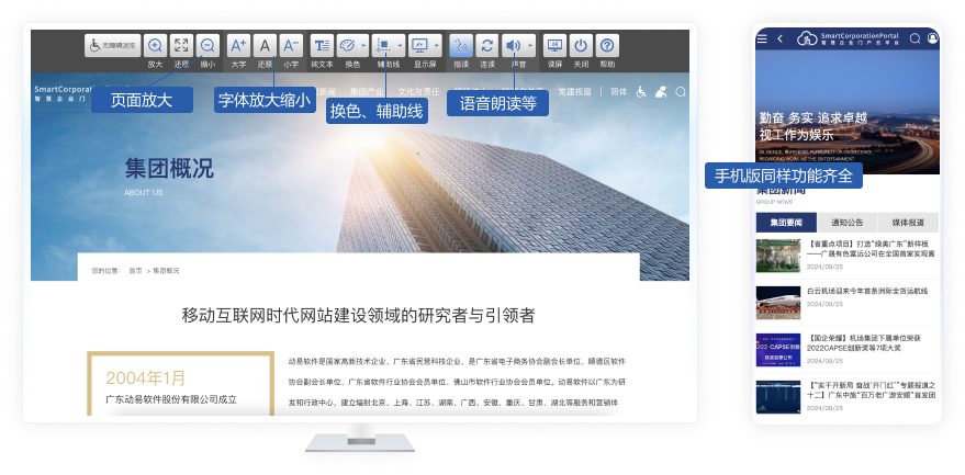 SmartCorporationPortal 是動(dòng)易基于 WebFuture 全媒體發(fā)布平臺(tái),為滿足大型國(guó)企、央企、集團(tuán)型企業(yè)的網(wǎng)站群集約化建設(shè)、信創(chuàng)適配、移動(dòng)適配、全媒體發(fā)布和監(jiān)測(cè)、無(wú)障礙改造和適老化建設(shè)等需求而量身定制的整套解決方案。