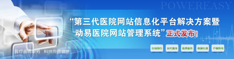 今天,動(dòng)易公司正式發(fā)布以“醫(yī)療面向服務(wù) 科技傳遞健康”為宣傳口號(hào)的《第三代醫(yī)院網(wǎng)站信息化平臺(tái)解決方案》,并推出基于第三代醫(yī)院網(wǎng)站信息化平臺(tái)下的“動(dòng)易醫(yī)院網(wǎng)站管理系統(tǒng)”!