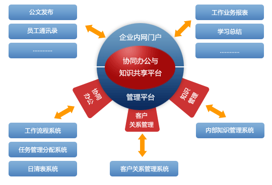 動易協(xié)同辦公與知識共享平臺由協(xié)同辦公平臺、知識管理平臺兩大部份構(gòu)成,涵蓋企業(yè)工作流管理、任務(wù)分配管理、日清表管理、客戶關(guān)系管理、內(nèi)部知識門戶等應(yīng)用,將知識管理與應(yīng)用平臺、管理和協(xié)作平臺、溝通平臺集于一身,有效解決信息孤島、應(yīng)用孤島和資源孤島問題,打破企業(yè)管理的各種屏障,讓企業(yè)的人、財(cái)、物、信息、流程等資源集中在統(tǒng)一的平臺上進(jìn)行管理,并實(shí)現(xiàn)它們之間的緊密鏈接和高效協(xié)作,從而為企業(yè)建立一個全面協(xié)同的數(shù)字化管理和運(yùn)營環(huán)境。