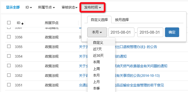 發(fā)布時間篩選