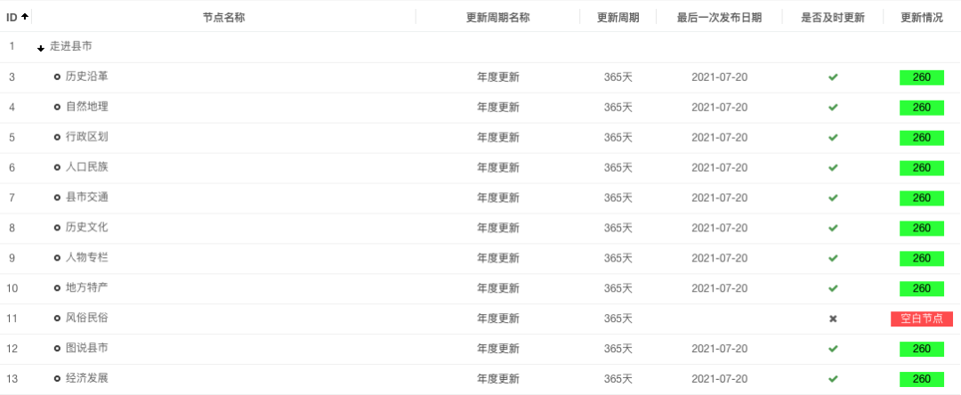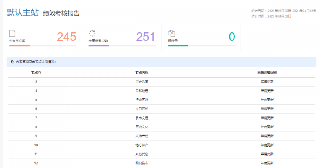 內(nèi)容更新預(yù)警具有主動(dòng)提醒功能,系統(tǒng)會(huì)自動(dòng)根據(jù)規(guī)則的周期判別信息是否及時(shí)更新。