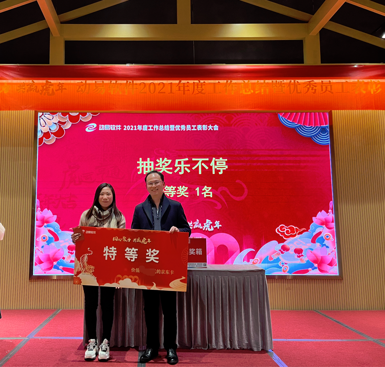 公司對2021年表現(xiàn)優(yōu)異的動易人進(jìn)行了表彰鼓勵, 主持人宣布了獲得各獎項的名單,并由公司高層分別為獲獎者頒發(fā)了表彰證書和獎金。