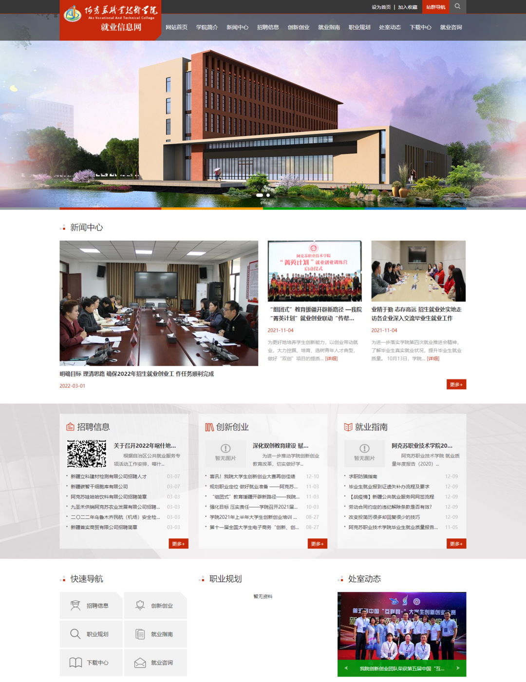就業(yè)信息網(wǎng)作為站群二級站點,通過整理、歸納和分析,提供就業(yè)動態(tài),對學(xué)生的求職擇業(yè)及自我塑造和發(fā)展起到幫助和導(dǎo)向作用,并提供求職招聘渠道。