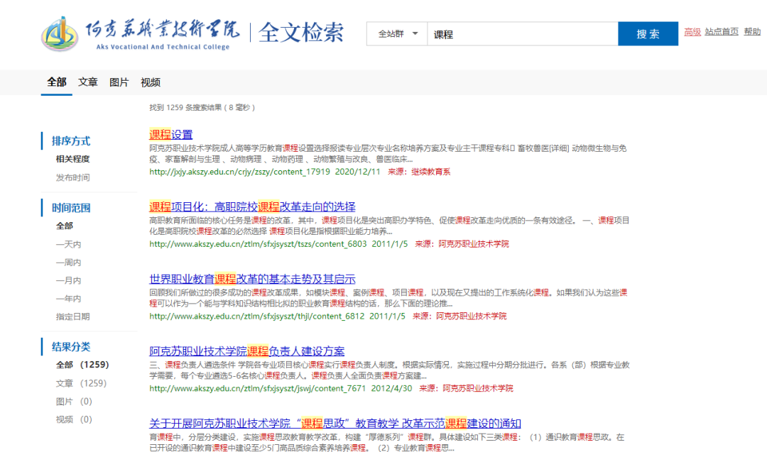 智能的全文檢索技術(shù),可支持檢索網(wǎng)站群全站數(shù)據(jù),也支持跨站點或指定站點的檢索。可在最短時間內(nèi),完整、準(zhǔn)確、及時地掌握網(wǎng)站所有信息,可為網(wǎng)站解決海量數(shù)據(jù)下的站內(nèi)信息和文檔檢索應(yīng)用,向師生、社會人士提供高效、準(zhǔn)確、個性化的站內(nèi)資訊搜索體驗,大大提升用戶在網(wǎng)站的檢索和查詢體驗。清晰的目錄結(jié)構(gòu),也為用戶提供便捷、舒適的信息查詢環(huán)境。