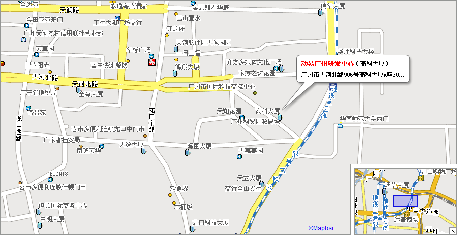 動易廣州研發(fā)中心位于天河軟件園高科大廈,辦公面積200多方,地處華師后大門天河北科技街,有3號地鐵和210路、234路、242路、269路等多條公交線路直達(dá),周邊擁有華南理工大學(xué)、華南師范大學(xué)等多所高校和科研院所,周圍聚集太平洋電腦城、南方現(xiàn)代科技廣場、天河軟件廣場、廣州軟件信息廣場等大型電腦軟件市場,為IT精英匯集之地。