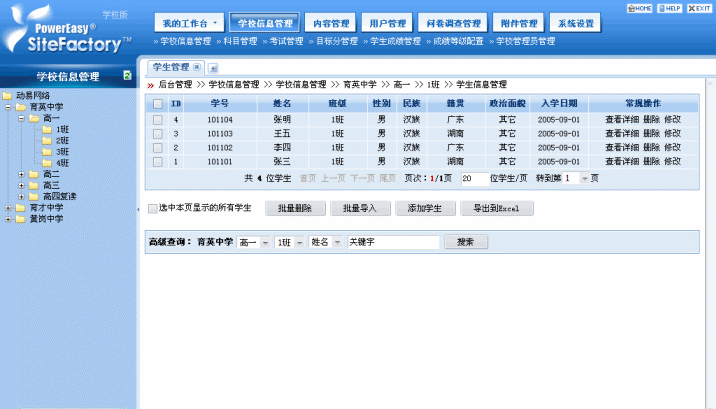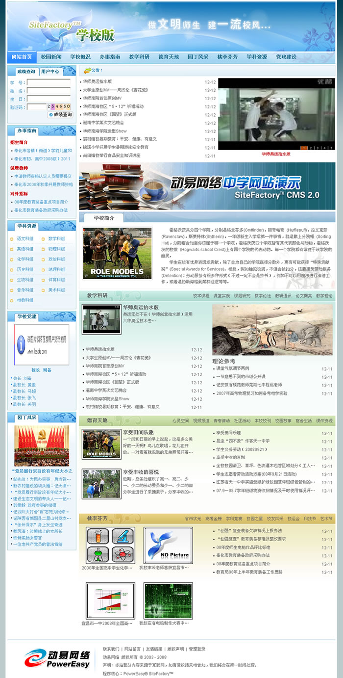 SiteFactory 學校版應用演示:http://school.powereasy.net