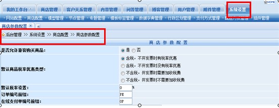 首先進(jìn)入系統(tǒng)后臺(tái)“系統(tǒng)設(shè)置”界面,在“商店配置”功能欄中點(diǎn)擊“商店參數(shù)配置”。