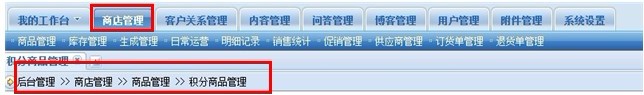 首先進(jìn)入系統(tǒng)后臺“商品管理”界面,點(diǎn)擊“積分商品管理”。