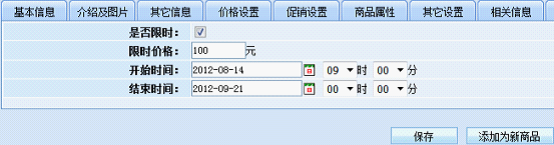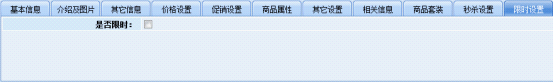 首先,進入動易BizIdea后臺, 選擇某件“限時搶購”的商品,開啟限時功能并設(shè)置屬性,如下圖: