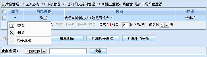 同時(shí),訪談主持人、書(shū)記員或訪談工作人員可以對(duì)網(wǎng)友的提問(wèn)進(jìn)行修改、刪除等多種管理。
