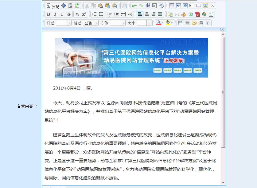 在動(dòng)易后臺(tái),進(jìn)入“添加文章頁面”,在編輯器中直接粘貼文章: