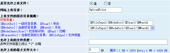 從圖中可以看出,除了上傳文件管理能夠?qū)Ρ4娴奈募M(jìn)行分類外,還能夠控制上傳功能開(kāi)關(guān)、上傳文件類型和文件大小。另外,上傳文件管理功能配合系統(tǒng)內(nèi)置的上傳文件過(guò)濾功能,可謂是對(duì)上傳了進(jìn)行了全方位的管理了。