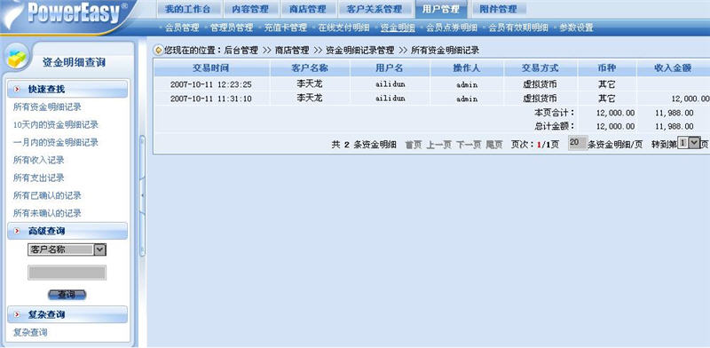 對于商店的會員顧客來說,動易eShop也提供了詳細的收入記錄、支出記錄、在線支付記錄、資金明細記錄的查閱功能,為顧客提供了一個簡便的個人理財工具。