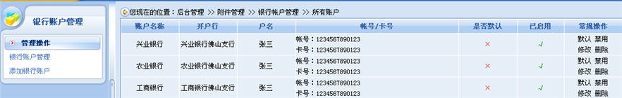 對于商家來說,銀行帳戶的管理意義還不僅僅是如此,銀行帳戶的管理還涉及到了商家對不同的銀行帳戶的匯入?yún)R出資金進行統(tǒng)計的功能。