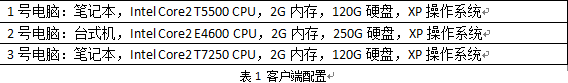 為避免某一臺客戶端電腦配置太慢會引起誤差,采用3臺不同的電腦上來測試。三臺電腦的配置分別為: