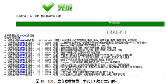 10萬篇文章數(shù)據(jù)量,生成1萬篇文章計時