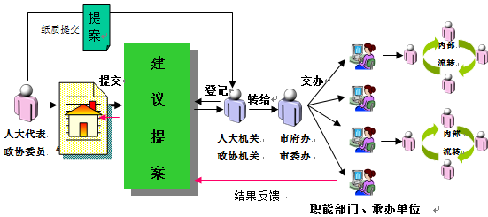 然后,秘書(shū)部門接收提案/建議,并分配給相關(guān)部門進(jìn)行處理;