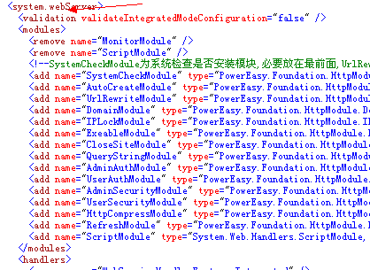 根據(jù)IIS 7的新情況,兼容IIS6等,對Web.config進行了重新配置,主要是對HTTP Module和Handler 進行了重新調(diào)整。